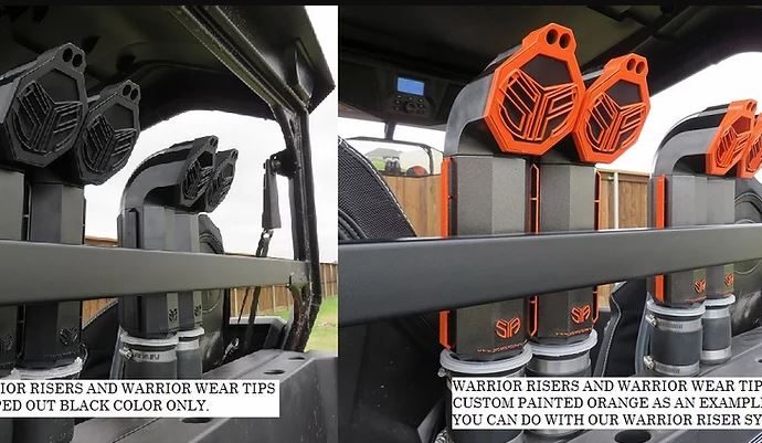 SYA Warrior Riser Snorkel Kits come standard with removable Warrior Wear tips that snap in easily and unsnap easily for cleaning. Although they are not required to use with the Warrior Riser, you will have them if and when you need them. They are easily cleaned and reusable and durable for long time use. The water repellant material is from Outerwears. Your Warrior Wear will come unglued so you have the option of custom painting your parts to match your machine. Easily glued with loctite stick'n seal glue. You may choose to glue them together with the water repellent pre filter material, or to glue together without, your choice. The CVT outlet should not have the water repellent material in place. The instructions with your kit contain all information on your Warrior Wear tips.