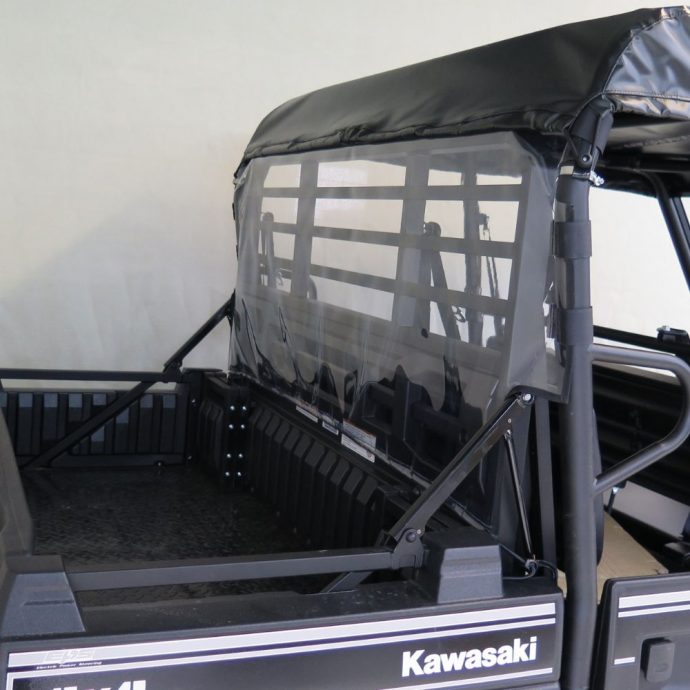 This heavy-duty PVC Clear Back Panel fits with both the Kawasaki factory and TRAX rooves.