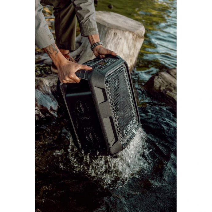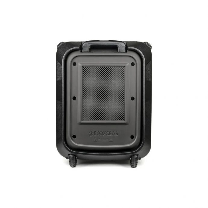 The EcoBoulder Ultra Bluetooth Speaker is 100% waterproof, submersible, and even floats. Let it sit outside in the rain or snow or drop it in a river - it keeps on playing. The EcoBoulder Ultra wirelessly connects via Bluetooth to your smartphone, tablet, or laptop with up to 30 m (100 ft) of range. Optimised for massive sound — a dynamic 100 watt power amplifier drives an 8-inch full range speaker, an 8-inch passive woofer, and a 3-inch tweeter for up to 121 decibels of crisp highs, clear vocals, warm midrange, and a deeper bass than ever before (audio sources include Bluetooth, AM/FM radio or wired AUX-In). Play continuously on standard AC plug-in power, or built-in battery for 10+ hours at full volume and up to 25+ hours at average listening levels. EcoCast compatible- Wirelessly connect up to 100 EcoCast enabled ECOXGEAR or SoundExtreme products of any mix.