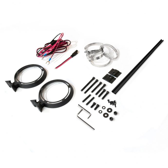 Version 3 of ECOXGEAR's mounting bracket. Circular brackets mount to outside of the SoundExreme speaker allowing for 360 degrees of rotation. Includes: