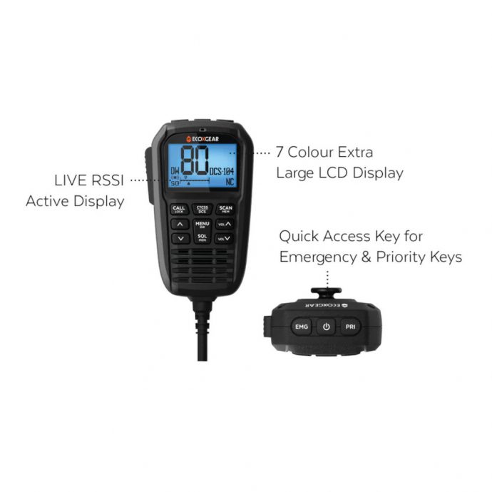 Features include a fully functional EXTRA Large LCD Display microphone with a backlit keypad, dedicated Volume and Channel keys, heavy-duty microphone cord, Open and Group scan functionality, one touch instant channel program and priority channel watch, magnetic Mic Hanger.