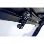 Seizmik's Hard Coated Flip Up Windshield with Versa-Vents offers a configuration to keep drivers and passengers comfortable in any weather condition. On hot days, a quick twist of the ergonomic handle opens the windshield smoothly and holds it in the fully open and up position thanks to the two gas-filled struts. Closing is as easy as pulling the windshield back down — the latching mechanisms on the lower corners engage and keep the window closed. Seizmik's low-effort, single point release system utilises 19 mm (¾") round tubing and glass filled nylon mounts, creating a less distracting and more elegant profile along the lower edge of the windshield when compared to similar stamped steel systems.