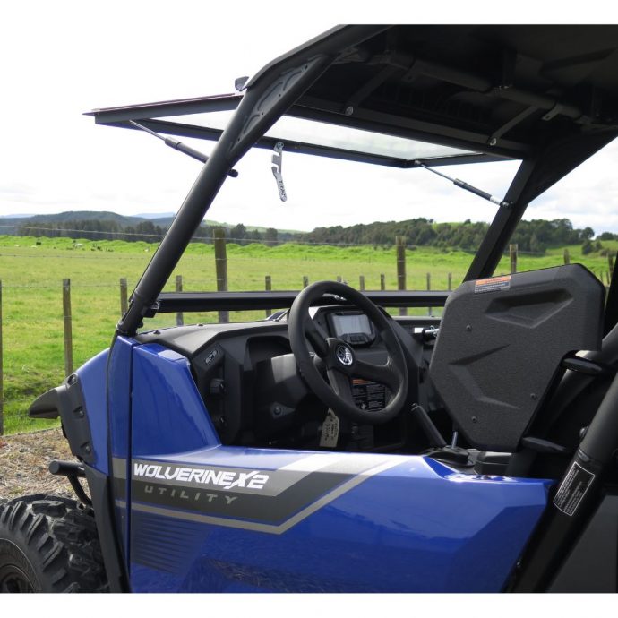 Improve your ride experience with this highly durable automotive-quality laminated Glass Hinging Windscreen Kit for Yamaha Wolverine RMAX & X2/X4 UTVs.