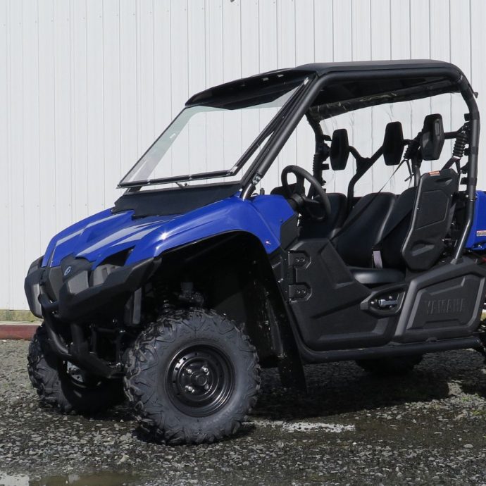 Improve your ride experience with this highly durable automotive-quality laminated Glass Hinging Windscreen Kit for Yamaha Viking UTVs.