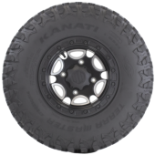 The Kanati Terra Master is the industry's first UTV tyre with an asymmetrical non-directional tread pattern. It's specially engineered tread pattern gives you the benefit of two tyres in one. With two distinctive sides to choose from, you can customise your tyre set up to your vehicle application and driving style. The Terra Master's profile is optimised for forward traction and side bite and features a light-weight steel-belted radial carcass for a stronger core and greater wear resistance.