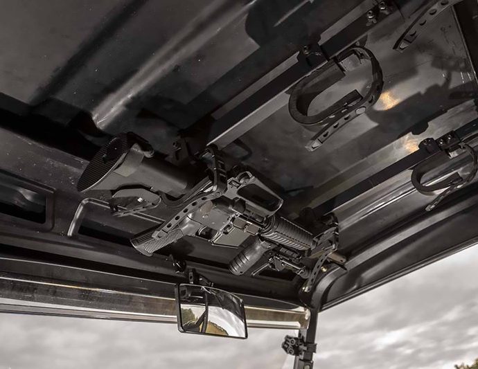 Kolpin's UTV Overhead In-Cab & Bow Rack secures and protects two guns or one bow. Installs in minutes without vehicle minutes without vehicle modification. Fits UTVs with 1.5-2.0 round cages as well as profile tubing.