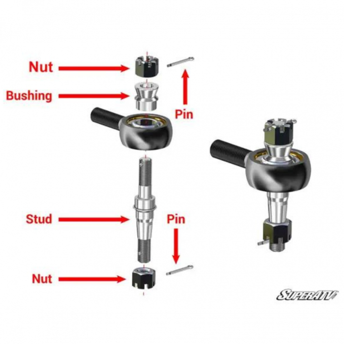SuperATV understand the need for bulletproof strength and unmatched durability. To ensure an exceptional product, they've increased the size of the tie rod ends, added misalignment bushings, and finished it with the optimal blend of materials and heat treating. The high strength 4130 Chromoly end is oversized allowing for an increased bearing surface area, leaving you with all-out strength, durability and reliability.