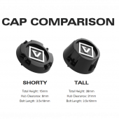 The Shorty Cap is the "standard" cap that comes with each Valor Wheels purchase. This cap fits 99% of the hub fitments out there however If you need more clearance for some of the larger hub fitments (Ranger, Defender, Wolverine, Viking) we offer a special Tall Cap.