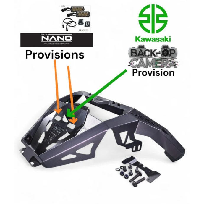 Upgrade your off-road experience with the 2026+ Kawasaki Teryx H2 Volt Rear Bumper, designed exclusively by Elektric Offroad Designs. Built for adventure and durability, this rear bumper combines the strength of mild steel with the lightweight properties of aluminum panels, ensuring your Teryx is protected while maintaining optimal performance.