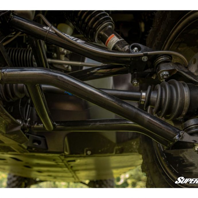 The dual-bend design of our A-Arms gives you 1.5 inches of additional ground clearance so you can cruise over obstacles easily. But they also have a 1.5" forward offset which gives you clearance for 28" tyres. That longer wheelbase gives you increased stability on hills and other big obstacles. Upgrading to that tyre size gives you even more ground clearance and enables some wild off-road action.