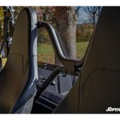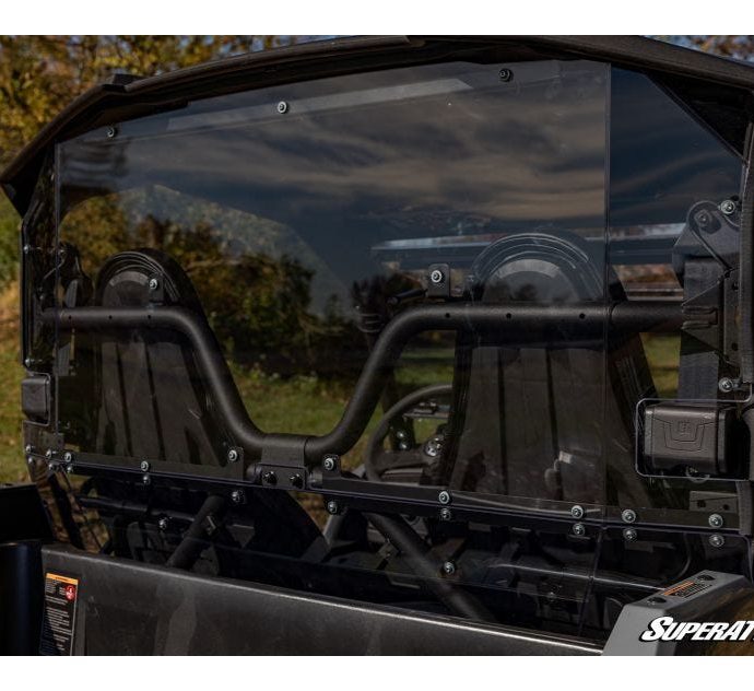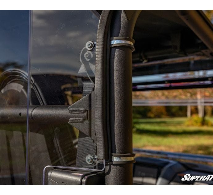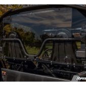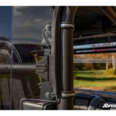 Polycarbonate is the best UTV windshield material because of its lightweight yet super-strong properties. It’s 250 times stronger than glass, so there’s no way this thing is breaking under pressure. A light tint keeps UV rays from sneaking into your cab and adds a touch of style to the rear of your machine.