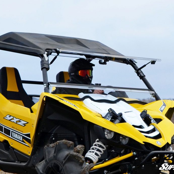 Get the freedom to hop in your Yamaha YXZ and ride without worrying about the weather. With a Scratch Resistant Flip Windshield from SuperATV, you’ll be comfortable no matter what. Set it to full, half, or vented to control your airflow right from the seat of your cab. You can leave it on year-round and ride regardless of the winter.